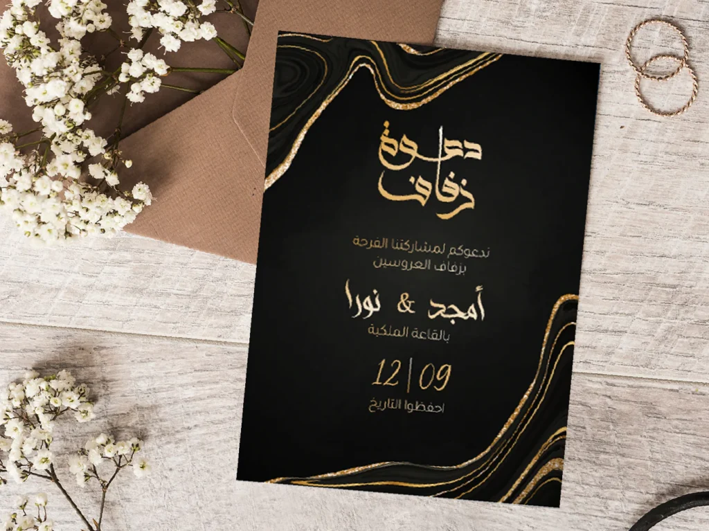 كروت أفراح مخصصة بتصاميم راقية وفاخرة، تناسب كل ذوق. من اختيار الورق الفاخر إلى الطباعة الدقيقة،